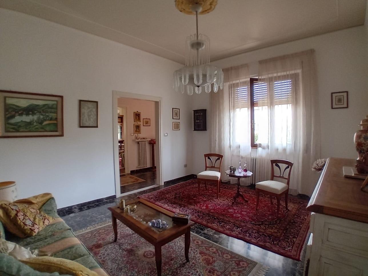 In ottima zona residenziale ma nel contempo vicina ai principali servizi disponiamo di un appartamento posto al piano terra di fabbricato bifamiliare con ingresso indipendente in buono stato di manutenzione. L'unità si compone di: ampio ingresso, soggiorno, sala da pranzo, cucinotto finestrato, disimpegno notte, due camere matrimoniali, grande bagno finestrato con doccia e studio/cameretta. A corredo tre ampi locali posti al piano seminterrato accessibili dall'esterno, garage di circa mq. 16 e il giardino privato posto sul retro adatto anche per fare l'orto. Posti auto scoperti all'interno della proprietà alla quale si accede da cancello elettrificato.