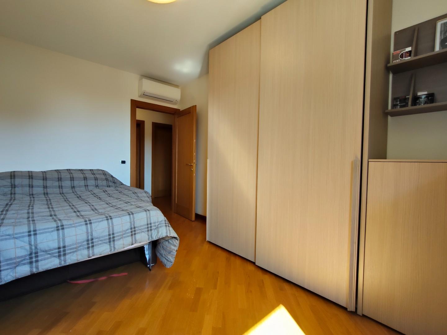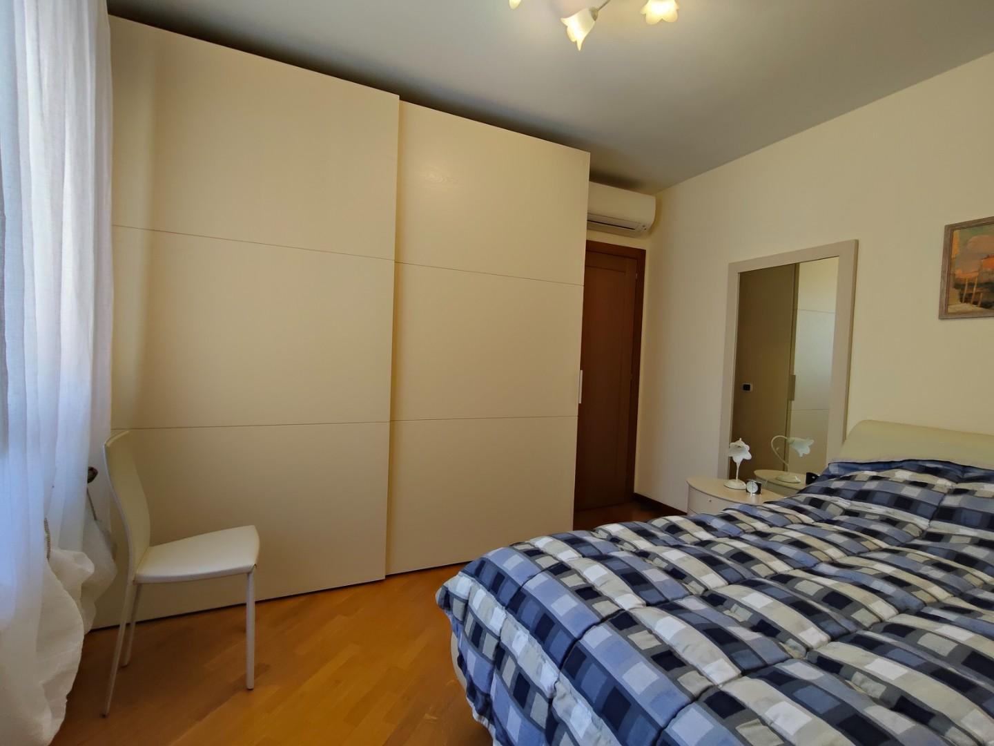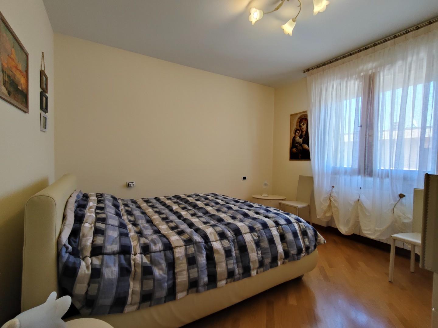 La zona notte è composta da tre camere da letto spaziose, tutte dotate di parquet, e due bagni moderni. Un ripostiglio con accesso a una veranda/lavanderia completa la disposizione interna, rendendo questo attico non solo elegante ma anche funzionale.